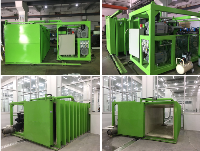 1.通過系統機組將箱體內空氣抽出(德國普旭真空泵)