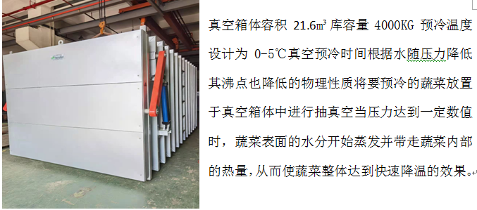 ★ 真空預(yù)冷設(shè)備主要由真空箱槽、真空系統(tǒng)、制冷系統(tǒng)、電控制系統(tǒng)組成。