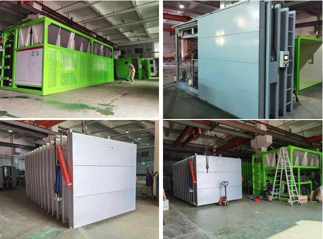 二卡板果蔬真空預(yù)冷機(jī)主要針對小型農(nóng)場的預(yù)冷加工使用;真空箱容積26.88m3,庫容量5000kg,預(yù)冷溫度設(shè)計為0~5℃;