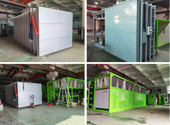 二卡板果蔬真空預冷機主要針對小型農場的預冷加工使用;真空箱容積26.88m3,庫容量4000kg,預冷溫度設計為0~5℃;