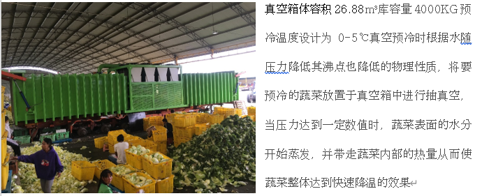 特別注意:真空預冷可以對雨天采收的果蔬表面去水,可以使果蔬表面的小創傷“愈合” 減少微生物侵入的機會!