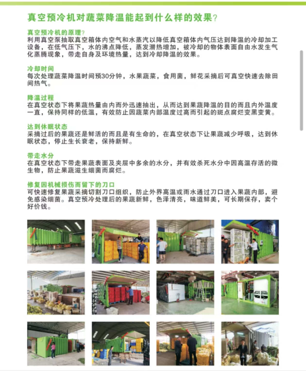 7. 可以延長(zhǎng)貨架期,經(jīng)真空預(yù)冷的葉菜,無(wú)須冷藏可以直接進(jìn)超市。