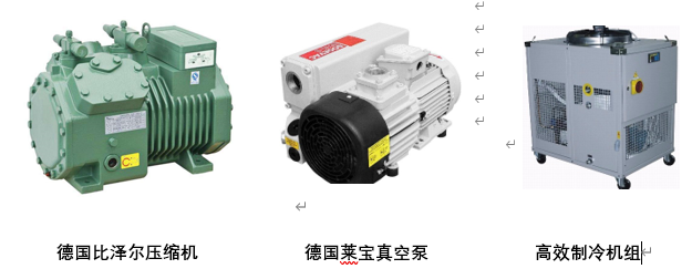 1.通過系統機組將箱體內空氣抽出(德國萊寶真空泵)制冷系統實現箱體內冷熱能量交換