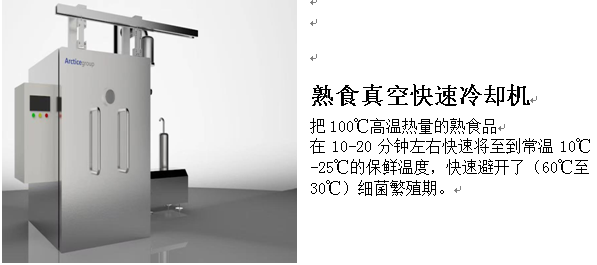 所以,熟食品生產(chǎn)加工后溫度很高,選用真空快速冷卻,可以保持原質(zhì)原味。讓大家真正享受 “綠色食品”。